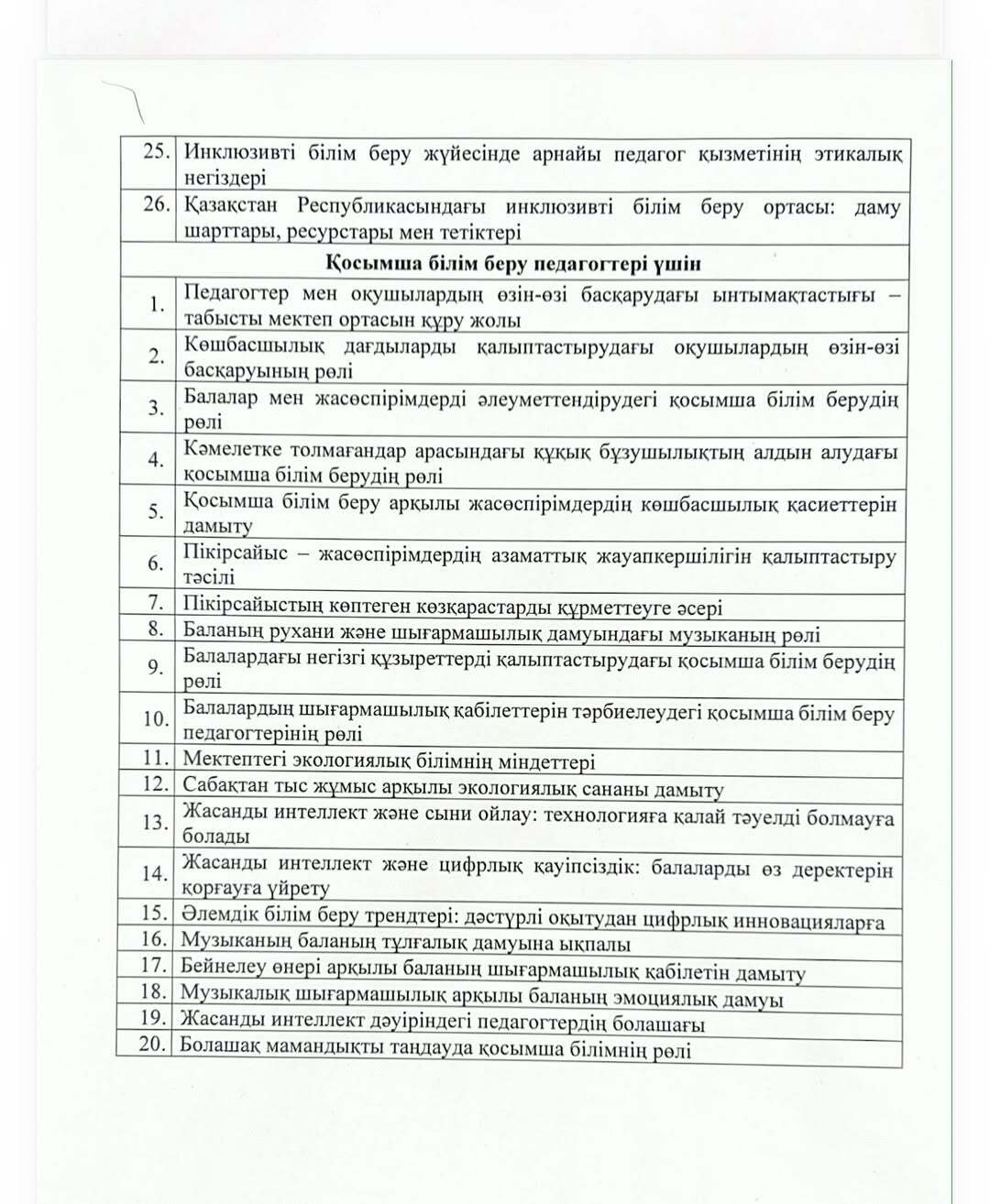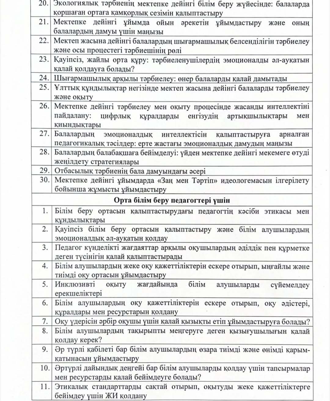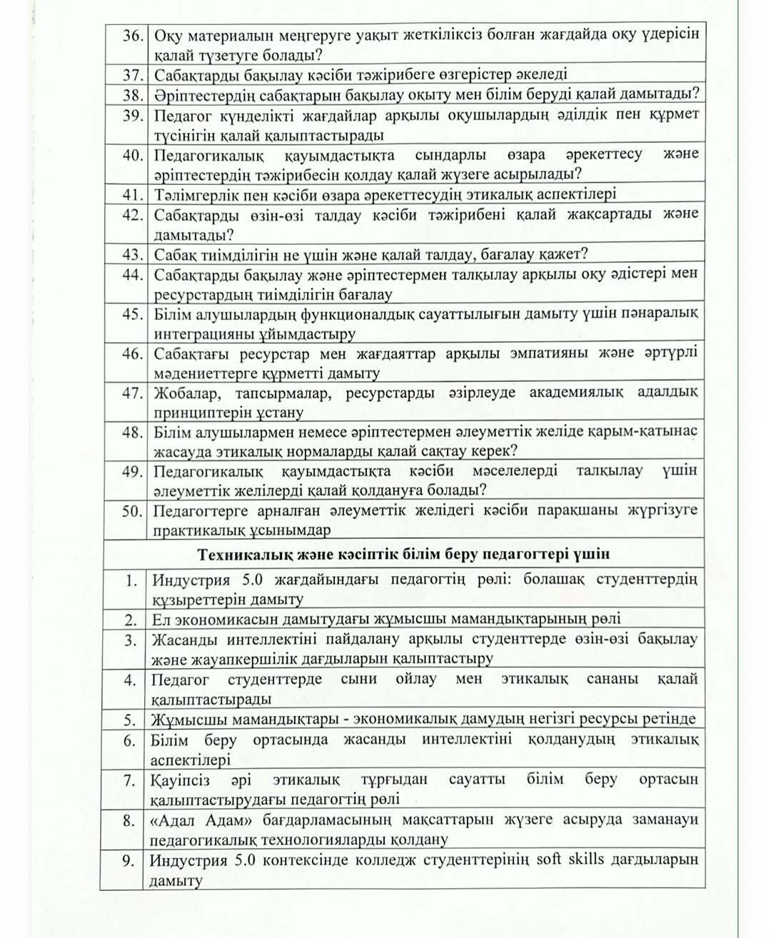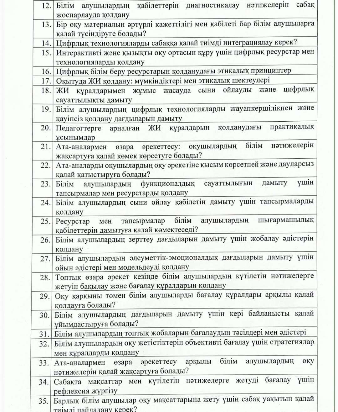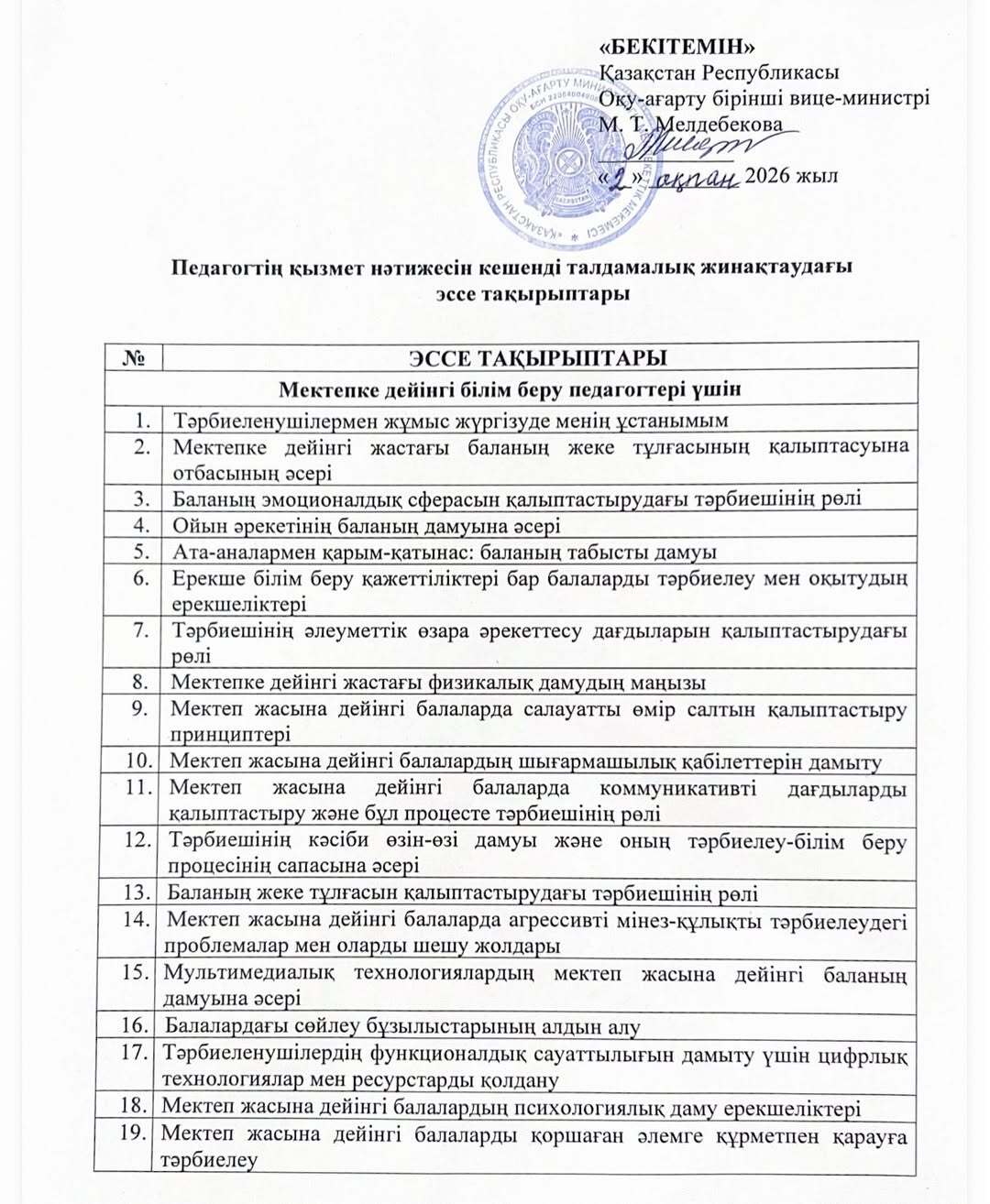 Педагогтің қызмет нәтижесін кешенді талдамалық жинақтаудағы эссе тақырыптары